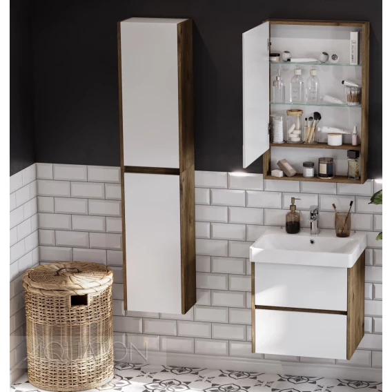 Зеркальный шкаф 55x85 см белый матовый/дуб рустикальный L/R Акватон Сканди 1A252102SDZ90