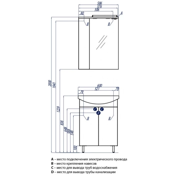 Полочка, Подсветка, Ручка, Выключатель, Розетка