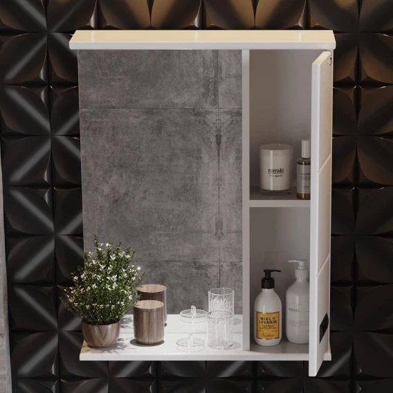 Навесной зеркальный шкаф в ванную комнату Onika БАЛТИКА 58 Black - это простые функциональные формы и яркий акцент в любом дизайне.Глянцевый белый цвет фасада контрастирует с черной матовой фурнитурой, а ненавязчивая горизонтальная фрезеровка дополняет образ стильной и современной мебели.Справа от зеркала за распашной дверцей с механизмом плавного закрывания расположено отделение для хранения, разделенное на две части горизонтальной полочкой, под зеркалом - открытая полочка для косметических средств или декоративных элементов.Зеркальное полотно создано на основе серебряной амальгамы, которая обеспечивает качественное изображение, влагостойкость и долгий срок эксплуатации.Источник света шкафа - врезной светодиодный модуль, дополненный механическим выключателем и встроенной розеткой.Корпус шкафа-зеркала выполнен из ЛДСП, фасад - из ЛМДФ в пленке, устойчивых к механическим воздействиям, перепадам температур и высокой влажности.Подвесы для крепления шкафа к стене - в комплекте.