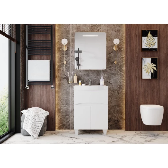 Комплект мебели белый глянец 60 см Onika Стрим 106144 + UM-COM60/1 + 206064
