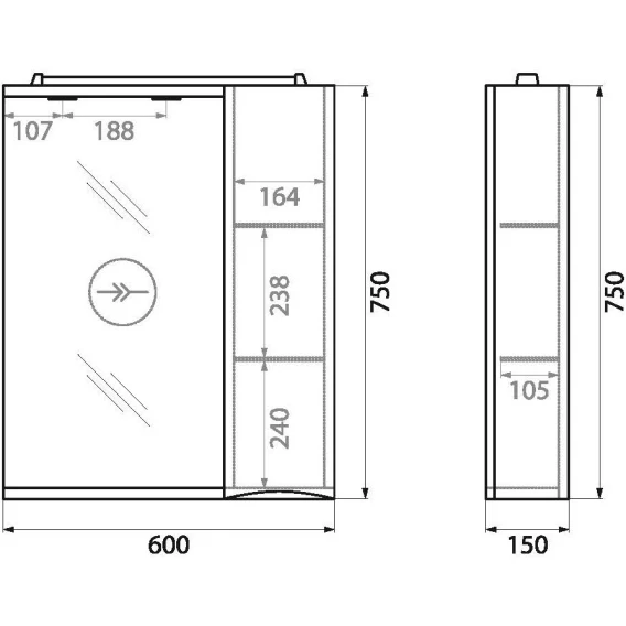 Зеркальный шкаф 60x75 см Bianco Lucido BelBagno Marino MARINO-SPC-600/750-1A-BL-P-R