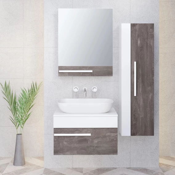 Зеркальный шкаф 60x75 см железный камень/белый R Runo Вудлайн 00-00001345