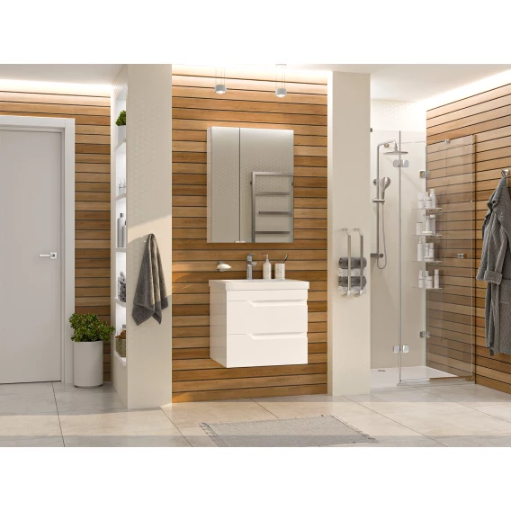 Зеркальный шкаф 60x80 см белый глянец R Misty Аура Э-Аур02060-01