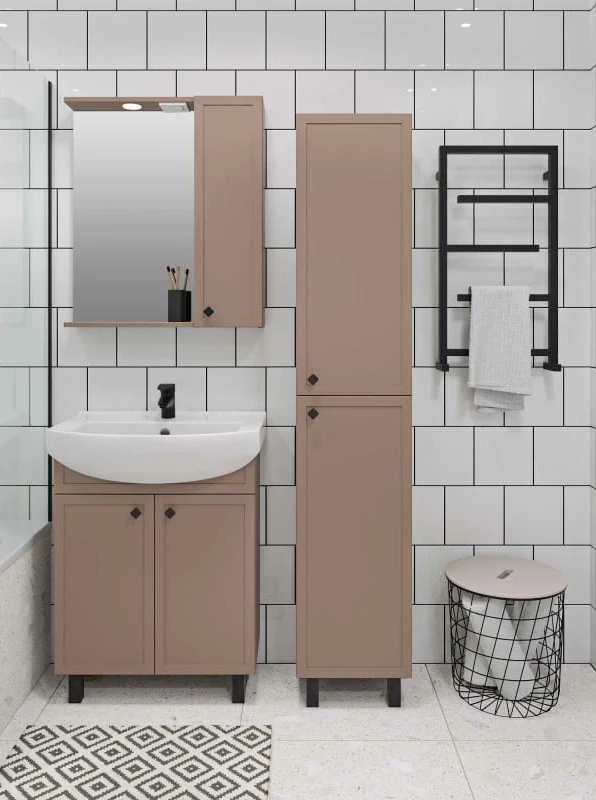 Зеркальный шкаф 65x75 см бежевый R Runo Римини 00-00001278