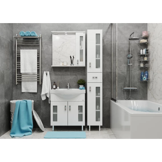 Стильное и красивое зеркало со шкафчиком Onika КРИСТАЛЛ 67 сможет гармонично вписаться в любой интерьер.Белоснежный цвет фасада в сочетании со вставками из матового стекла и хромированными ручками необычной формы придадут ванной комнате ощущение свежести, чистоты и уюта.Справа от зеркала за распашной дверцей с механизмом плавного закрывания расположено отделение для хранения, разделенное полкой, под зеркалом - открытая полочка для косметических средств или декоративных элементов.Зеркальное полотно создано на основе серебряной амальгамы, которая обеспечивает качественное изображение, влагостойкость и долгий срок эксплуатации.Источник света зеркального шкафа - два врезных светодиодных модуля, дополненных механическим выключателем и встроенной розеткой.Корпус шкафа-зеркала выполнен из ЛДСП, фасад - из ЛМДФ в пленке, устойчивых к механическим воздействиям, перепадам температур и высокой влажности.Хромированная ручка, а так же подвесы для крепления шкафа к стене - в комплекте.