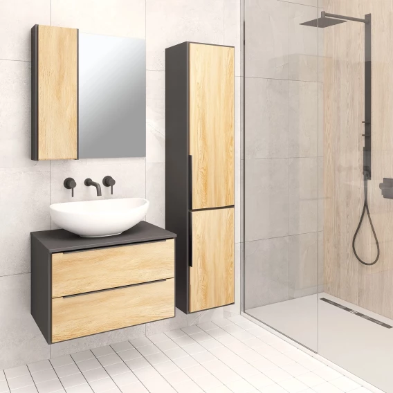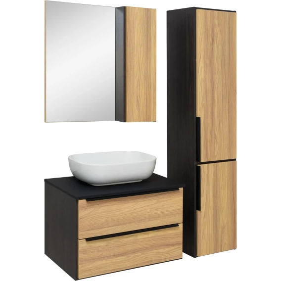Зеркальный шкаф 70x75 см дуб/черный L/R Runo Мальта 00-00001101