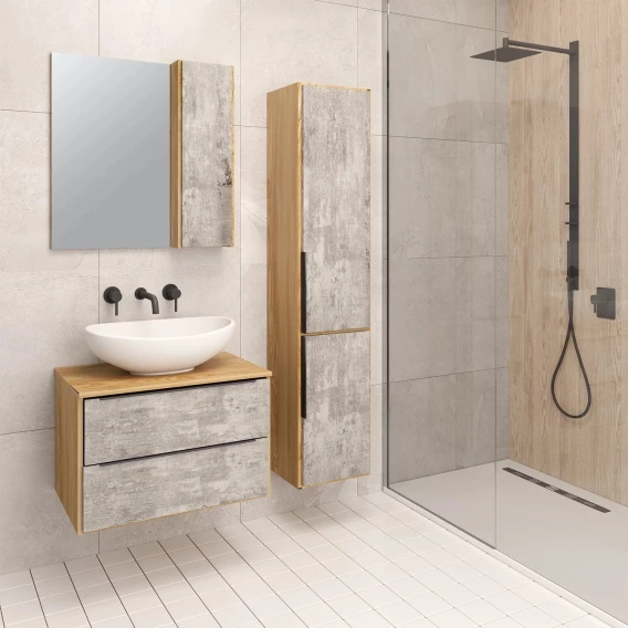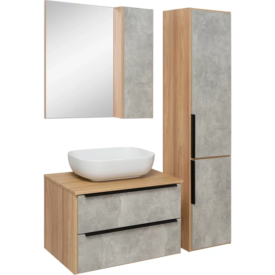 Зеркальный шкаф 70x75 см дуб/серый камень L/R Runo Мальта 00-00001102