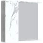 Шкаф-зеркало МАРБЛ 75 станет стильным и функциональным элементом пространства современной ванной комнаты. Спроектированный дизайнерами в минималистичном облике, зеркальный шкаф отражает самые актуальные расцветки сезона - бетон и мрамор.Открытая полка обеспечивает быстрый доступ к часто используемым аксессуарам, а пространство за распашной дверцей, оснащенной механизмом плавного закрывания, будет удобным местом для хранения различных бытовых принадлежностей.Зеркальное полотно создано на основе серебряной амальгамы, которая обеспечивает качественное изображение, влагостойкость и долгий срок эксплуатации.Корпус шкафа выполнен из ЛДСП, фасад - из ЛМДФ в пленке, устойчивых к механическим воздействиям, перепадам температур и высокой влажности.Подвесы для крепления шкафа к стене и белая матовая ручка - в комплекте.