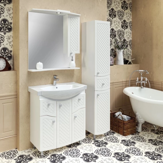 Зеркальный шкаф 75x80 см белый R Runo Милано УТ000002098