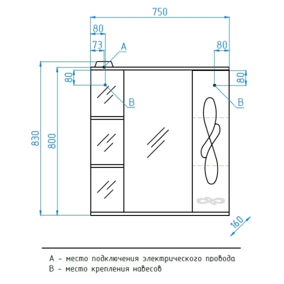 Механизм доводчика, Полочка, Ручка, Выключатель, Розетка