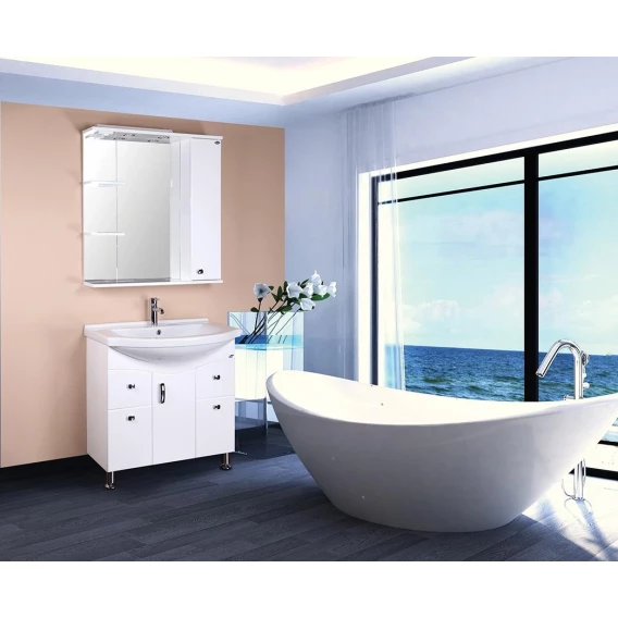 В зеркальном подвесном шкафе Onika ЭЛЬБРУС 80 белоснежный глянец фасада подчеркивается оригинальной хромированной фурнитурой и простой изысканной геометрией линий.Современный функционал шкафа позволяет удобно расположить все необходимое: справа от зеркала за распашной дверцей с механизмом плавного закрывания расположено отделение для хранения, разделенное на три части горизонтальными полочками, слева и внизу под зеркалом - открытые полочки для косметических средств или декоративных элементов.Зеркальное полотно создано на основе серебряной амальгамы, которая обеспечивает качественное изображение, влагостойкость и долгий срок эксплуатации.Источник света шкафа - два врезных светодиодных модуля, дополненных механическим выключателем и встроенной розеткой.Корпус шкафа-зеркала выполнен из ЛДСП, фасад - из ЛМДФ в пленке, устойчивых к механическим воздействиям, перепадам температур и высокой влажности.Подвесы для крепления шкафа к стене и хромированная ручка - в комплекте.