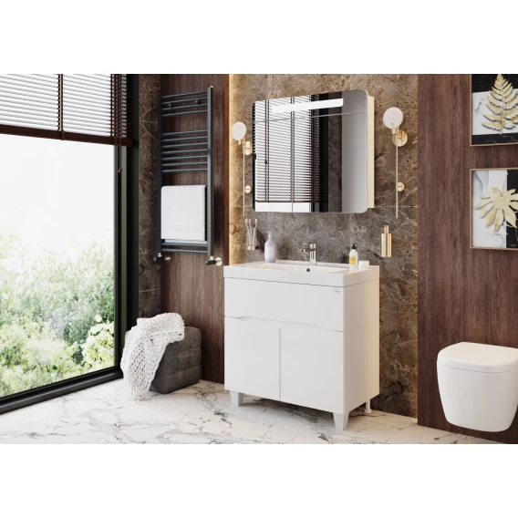 Комплект мебели белый глянец 81,5 см Onika Стрим 108059 + 4640021064733 + 208094