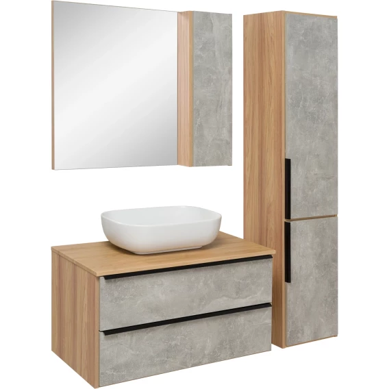 Зеркальный шкаф 85x75 см дуб/серый камень L/R Runo Мальта 00-00001104