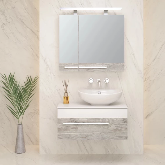 Зеркальный шкаф 85x75 см дуб скандинавский/белый Runo Вудлайн 00-00001007