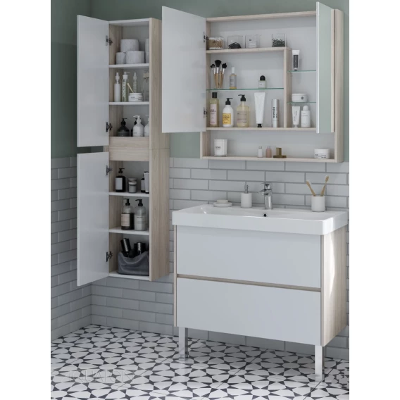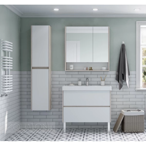Комплект мебели белый глянец/дуб верона 90 см Акватон Сканди 1A251901SDB20 + 1WH501629 + 1A252302SDB20