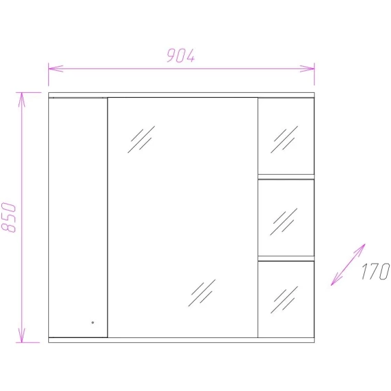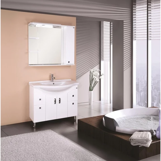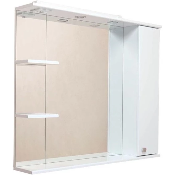 В зеркальном подвесном шкафе Onika ЭЛЬБРУС 90 белоснежный глянец фасада подчеркивается оригинальной хромированной фурнитурой и простой изысканной геометрией линий.Современный функционал шкафа позволяет удобно расположить все необходимое: справа от зеркала за распашной дверцей с механизмом плавного закрывания расположено отделение для хранения, разделенное на три части горизонтальными полочками, слева и внизу под зеркалом - открытые полочки для косметических средств или декоративных элементов.Зеркальное полотно создано на основе серебряной амальгамы, которая обеспечивает качественное изображение, влагостойкость и долгий срок эксплуатации.Источник света шкафа - два врезных светодиодных модуля, дополненных механическим выключателем и встроенной розеткой.Корпус шкафа-зеркала выполнен из ЛДСП, фасад - из ЛМДФ в пленке, устойчивых к механическим воздействиям, перепадам температур и высокой влажности.Подвесы для крепления шкафа к стене и хромированная ручка - в комплекте.