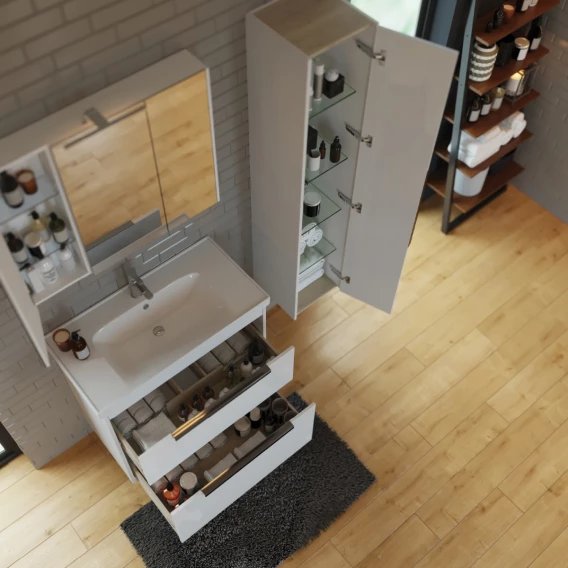 Зеркальный шкаф 90x70 см белый глянец L Dreja Prime 99.9306