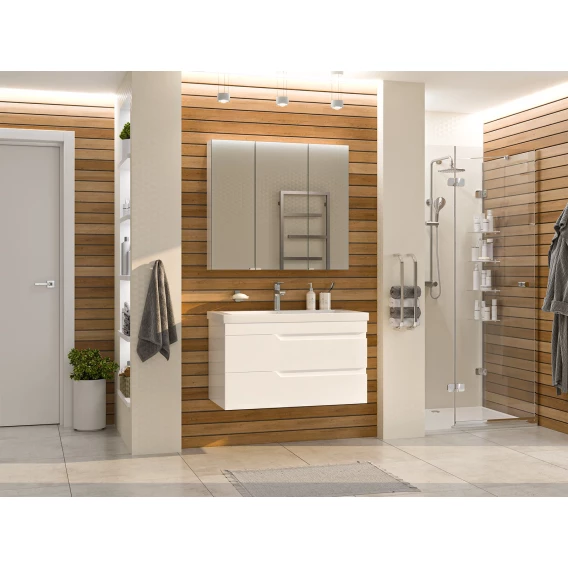 Зеркальный шкаф 90x80 см белый глянец R Misty Аура Э-Аур02090-01