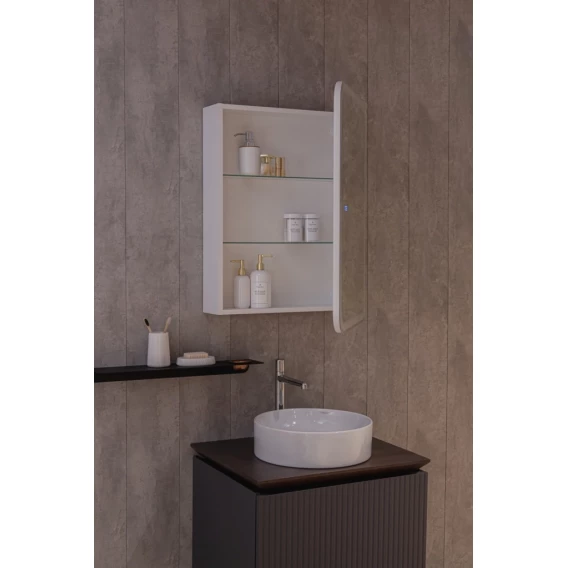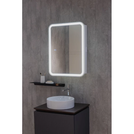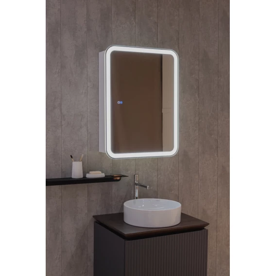 Зеркальный шкаф AQUAme AQM9201 60x80 см L/R, с LED-подсветкой, сенсорным выключателем, диммером, антизапотеванием, белый матовый