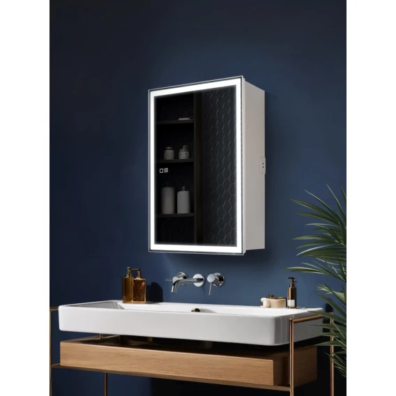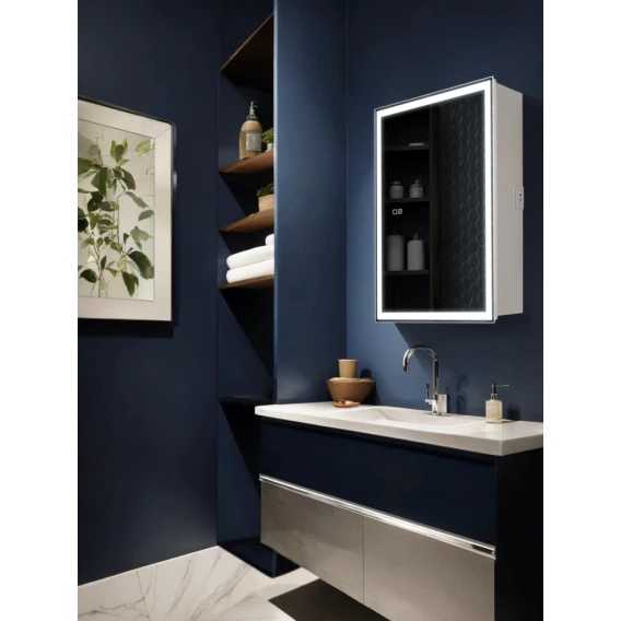 Зеркальный шкаф AQUAme AQM9202 60x80 см L/R, с LED-подсветкой, сенсорным выключателем, диммером, антизапотеванием, белый матовый