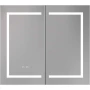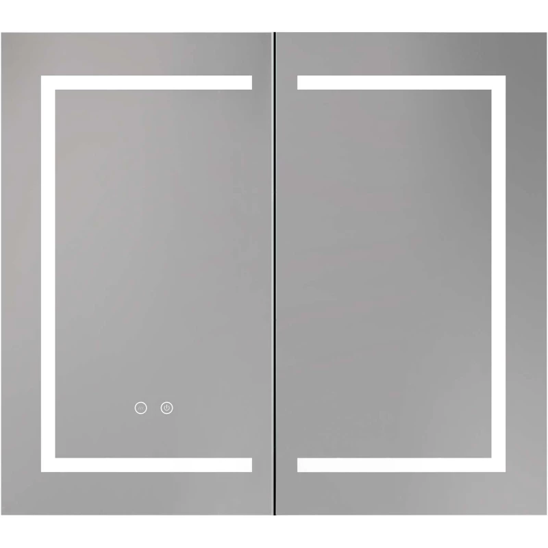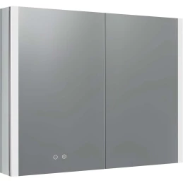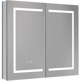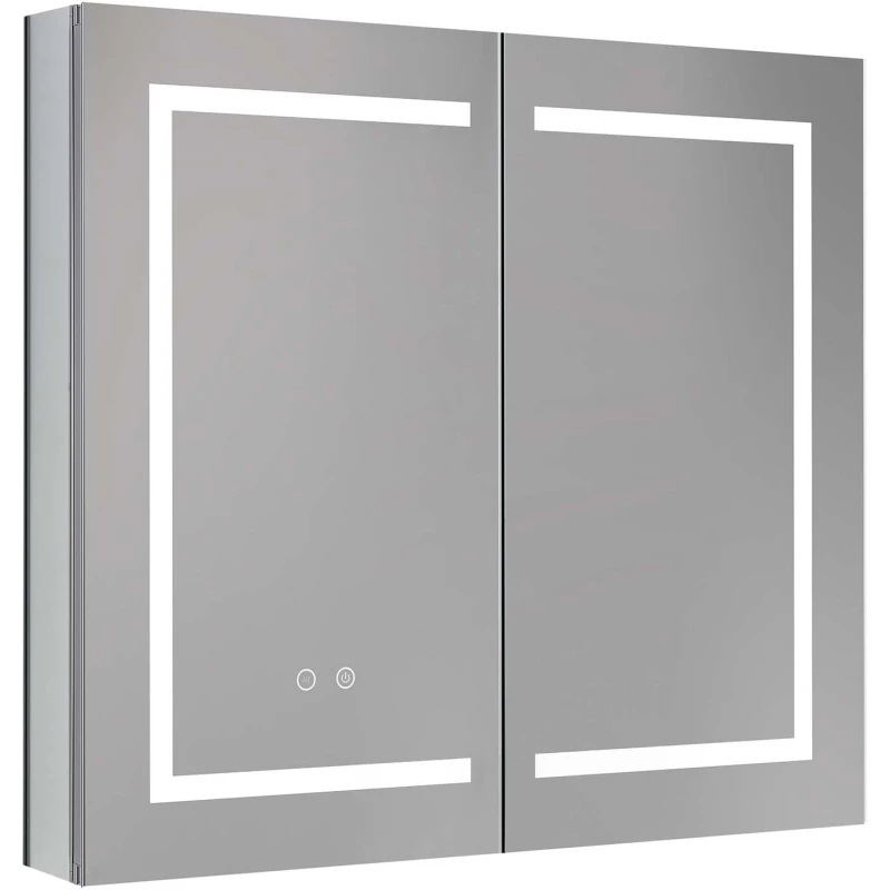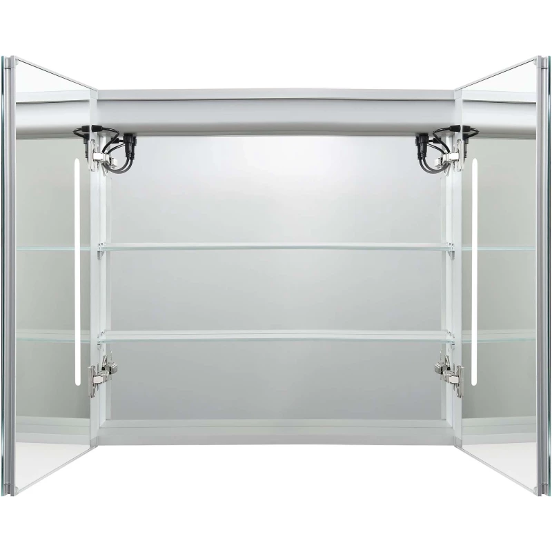 Алюминиевый зеркальный шкаф с подсветкой;Две зеркальные дверцы шириной 39,85см;Две стеклянные полки 8 мм;Круговая подсветка SMD 2835-120P, цветовая температура 2500K/6500K;Антизапотевание;2 режима переключения света/ цвета;Сенсорное управление;Двусторонняя зеркальная дверь и зеркальные боковины;С механизмом доводчика, обеспечивающим плавное закрывание;Мебель поставляется в собранном виде;Дополнительное оснащение зеркала: подвесы;
