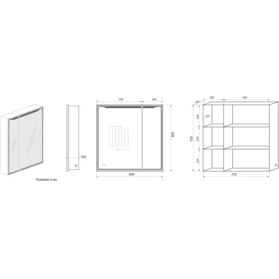 • Оснащение: зеркало-шкаф, провод с вилкой 1м, розетка, 4 полки навес, коробка, инструкция.