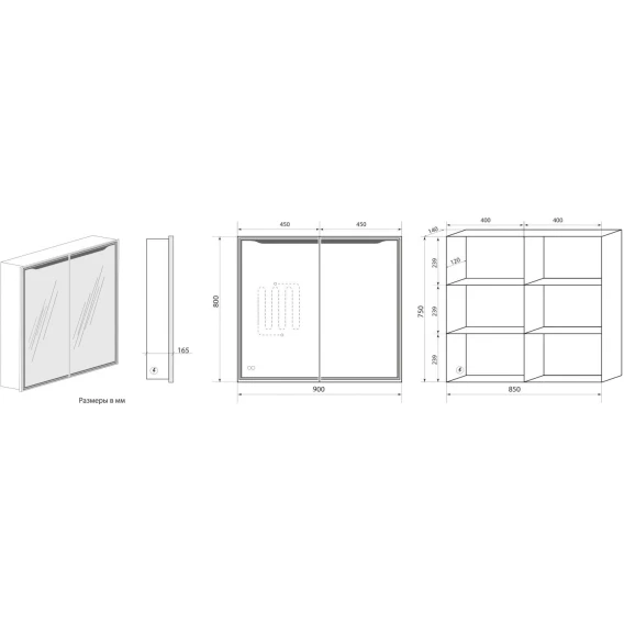 • Оснащение: зеркало-шкаф, провод с вилкой 1м, розетка, 4 полки, навес, коробка, инструкция.