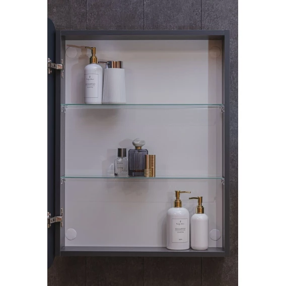 • Оснащение: зеркало-шкаф, 2 стеклянные полки, крепеж, коробка, инструкция.