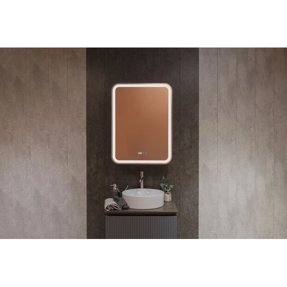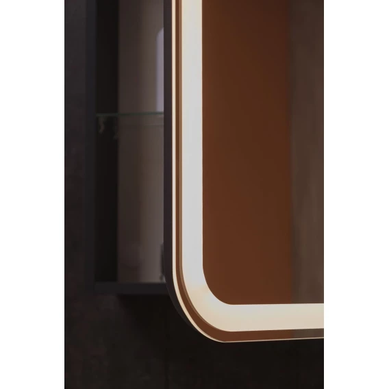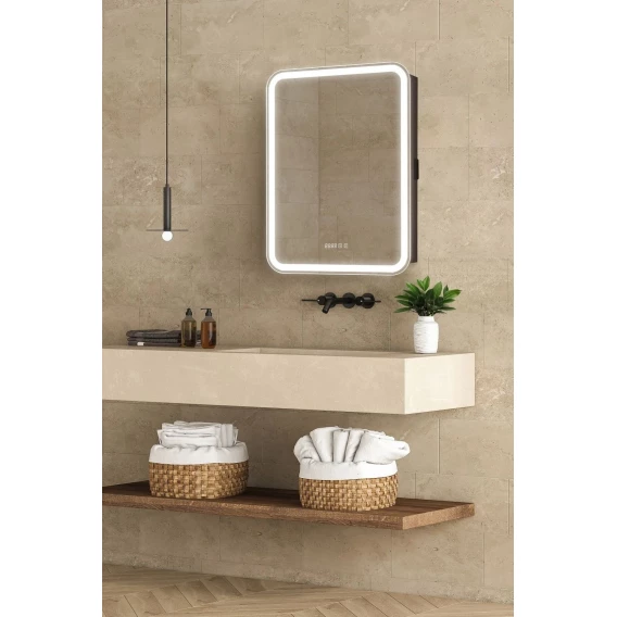 • Зеркало-шкаф, оснащенное светодиодной LED подсветкой с диммером, часами и функцией антизапотевания.