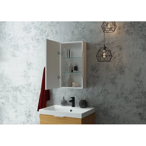 • Оснащение: зеркало-шкаф, 2 полки, крепеж, коробка, инструкция.