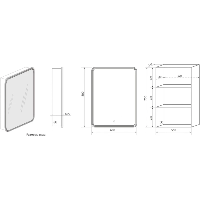 • Зеркало-шкаф, оснащенное светодиодной LED подсветкой с диммером.