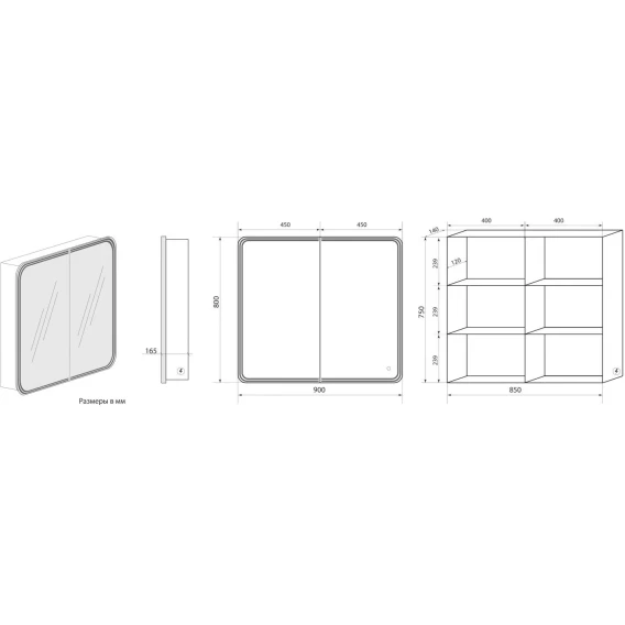 • Зеркало-шкаф, оснащенное светодиодной LED подсветкой с диммером.