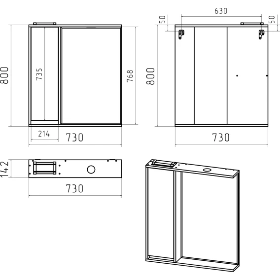 Крепление, Механизм доводчика, Полочка, Подсветка, Выключатель, Розетка