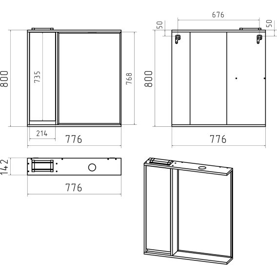 Крепление, Механизм доводчика, Полочка, Подсветка, Выключатель, Розетка