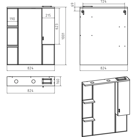 Крепление, Механизм доводчика, Полочка, Подсветка, Ручка, Выключатель, Розетка