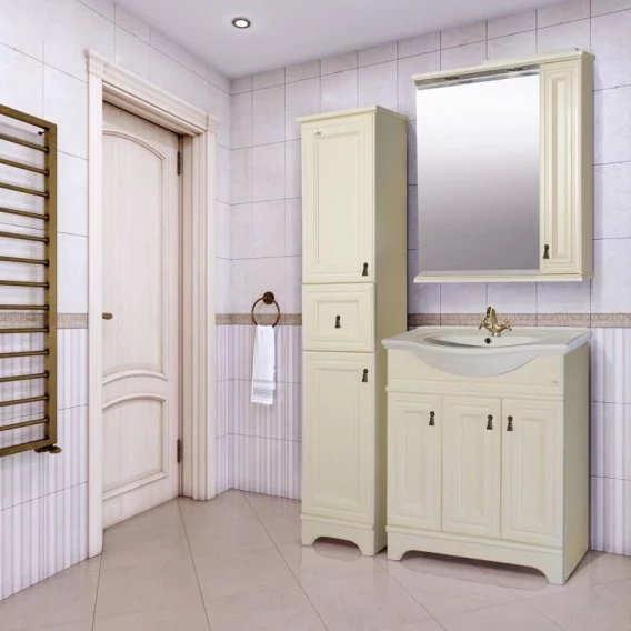 Зеркальный шкаф Misty Лувр П-Лвр03085-1014П 85x80 см R, с подсветкой, выключателем, слоновая кость