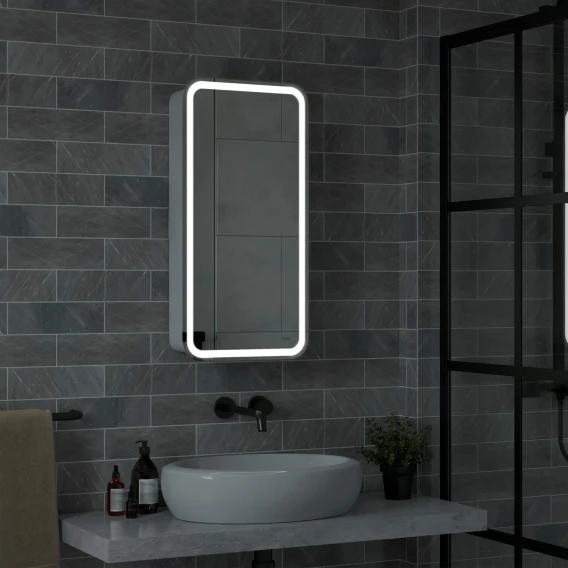 Представляем Зеркальный шкаф для ванной комнаты с контурной LED подсветкой Reflexion Circle 400х800 RF2004SR. Бренд Reflexion производит современную, качественную и экологичную мебель для ванных комнат. Благодаря собственному конструкторскому бюро, компания предлагает дизайнерские решения, уникальные для российского рынка. Благодаря автоматизации большинства процессов на производстве и современному Европейскому оборудованию, компания выпускает товары стабильного качества и снижает издержки производства. Глобальная цель компании, чтобы покупатель почувствовал радость от приобретения наших товаров и в последствии возвращался за покупками к нам. Зеркальный шкаф для ванной с LED подсветкой Reflexion RF2004SR прекрасно впишется в современный интерьер и повысит уровень комфорта ванной комнаты. Полотно защищено от воздействия влаги и механических повреждений. Выключатель срабатывает при взмахе руки. Зеркало дает четкое отражение, которое может быть подсвечено встроенной по периметру светодиодной лентой. Стеклянные полки легко регулируются по высоте. Хромированные крепления не ржавеют при длительной эксплуатации в условиях повышенной влажности. Защита по стандарту IP44 обеспечивает безопасное использование устройства в условиях повышенной влажности.