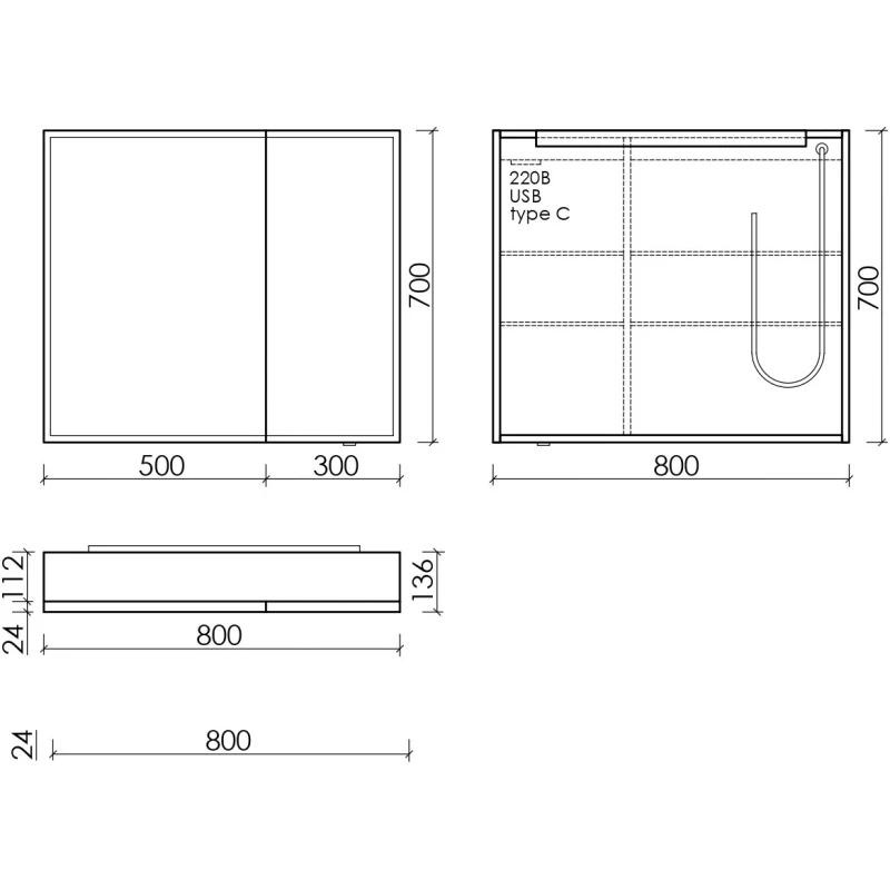 Механизм доводчика, Полочка, LED подсветка, Розетка, Сенсорный выключатель
