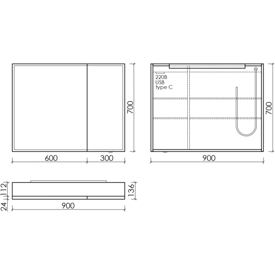 Механизм доводчика, Полочка, LED подсветка, Розетка, Сенсорный выключатель