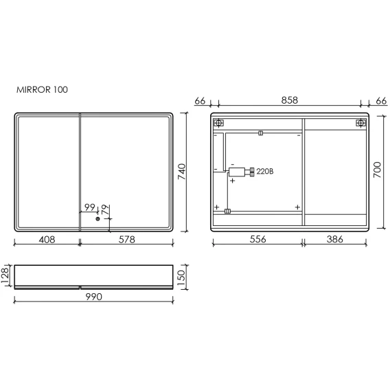 Механизм доводчика, Полочка, LED подсветка, Сенсорный выключатель