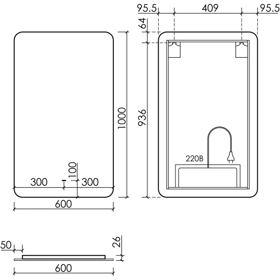 LED подсветка, Сенсорный выключатель, Вилка