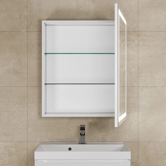 Зеркальный шкаф Uperwood Tanos ZTanos60w 60x70 см R, с LED-подсветкой, сенсорным выключателем, антизапотеванием, белый