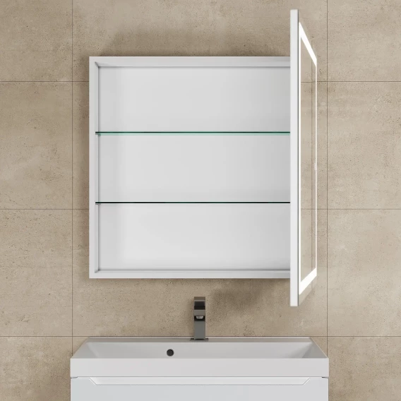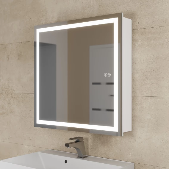 Зеркальный шкаф Uperwood Tanos ZTanos70w 70x70 см R, с LED-подсветкой, сенсорным выключателем, антизапотеванием, белый