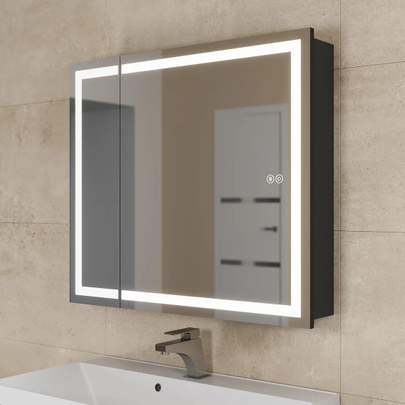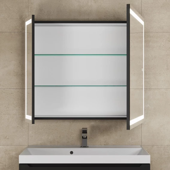 Зеркальный шкаф Uperwood Tanos ZTanos80b 80x70 см R, с LED-подсветкой, сенсорным выключателем, антизапотеванием, черный
