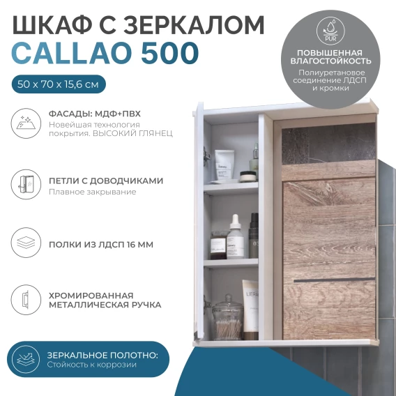 Зеркальный шкаф Vigo Callao z.CAL.50.L 50x70 см L, белый глянец/белый матовый