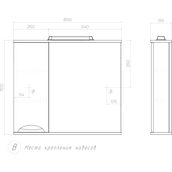 Механизм доводчика, Полочка, Подсветка, Ручка, Выключатель, Розетка