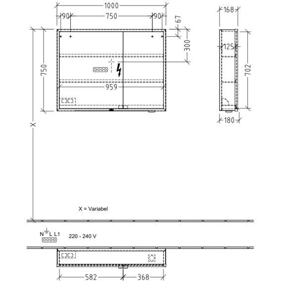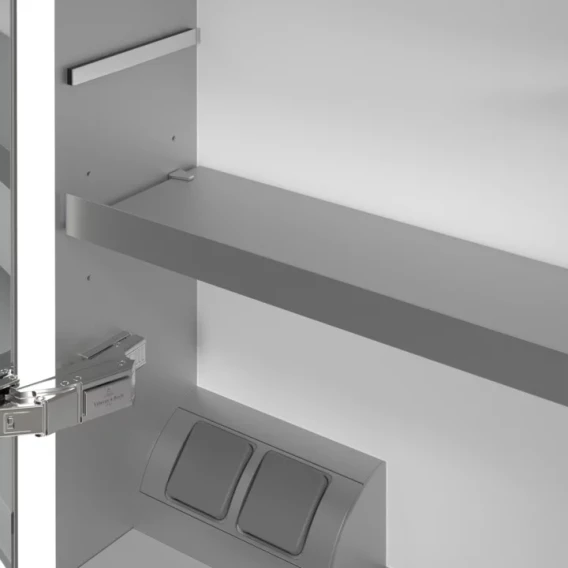 Крепление, Механизм доводчика, Полочка, Ручки, LED подсветка, Косметическое зеркало, Розетка, Сенсорный выключатель