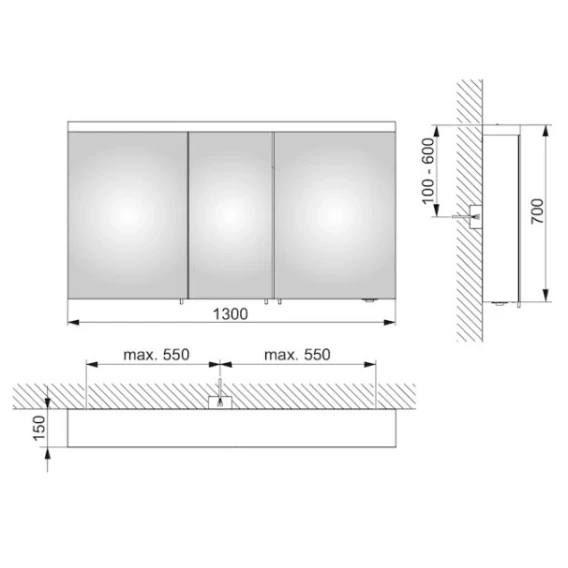 • 3 поворотные дверцы с хрустальным двойным зеркалом,