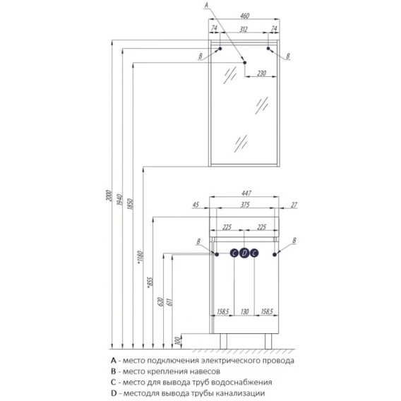 Комплект мебели белый глянец/джарра 46 см Акватон Бэлла 1A221501BBAZ0 + 1WH301972 + 1A221702BBAZ0