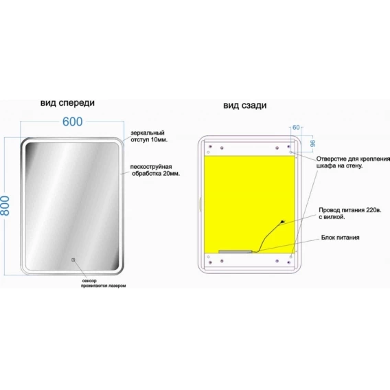 Механизм доводчика, Полочка, LED подсветка, Розетка, Сенсорный выключатель